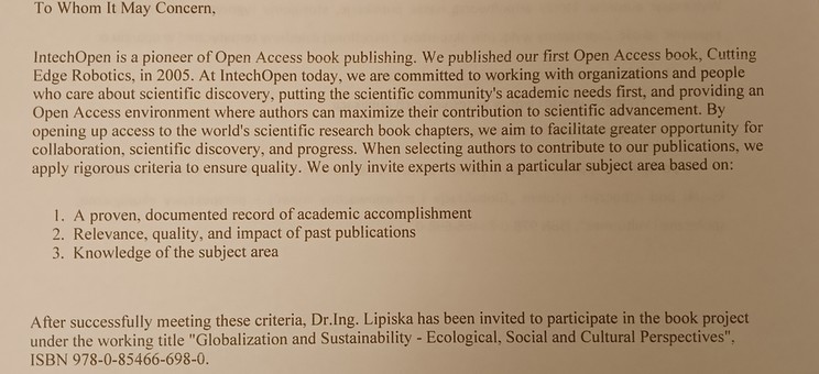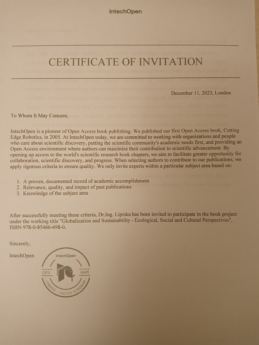 Zaproszono mnie do udziału w projekcie książki pod roboczym tytułem „Globalizacja i zrównoważony rozwój – perspektywy ekologiczne, społeczne i kulturowe”.