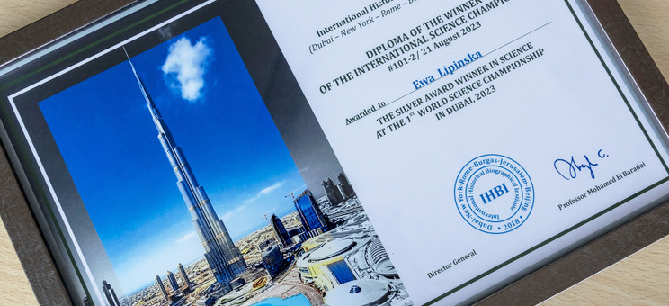 Tytuł Srebrnego Zwycięzcy Nauki został przyznany dr inż. Ewie Lipińskiej za udział w I Mistrzostwach Świata w Nauce w Dubaju, które odbyły się w dniach 7-21 sierpnia 2021 r., wzięło udział 1236 uczestników z 69 krajów. Zgłoszono prace z 38 dziedzin nauki. Nagrody otrzymało 360 naukowców. Wśród jurorów znalazło się ponad 30 laureatów Nagrody Nobla.